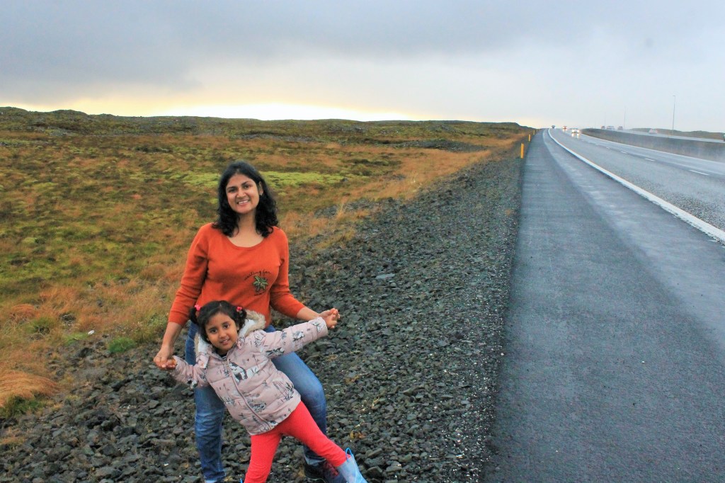At the airport, after checking out, we had to wade through a heavy storm to the car park. The car was just 50meters away from the exit door but with every two steps forward, we were pushed back one step and it was scary. This was a moment of freezing limbs especially for our four-year-old daughter, Smaira. We gathered courage, reached the spot after having beaten the winds, and heaved a sigh of relief once we were inside the car. What a start!!! But to our surprise, the weather changed dramatically in 30 minutes of drive. So, don’t be fooled by weather in Iceland, it changes quite quickly and the change in delightful.