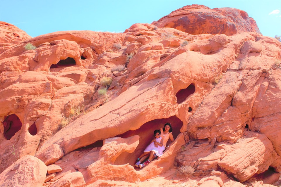 The last day we as a family visited the Valley of Fire (VOF). We rented a car from Alamo and it was worth a visit. If you could manage more time, try visiting the Grand Canyon. Since we had only one day left with us, we decided to go to VOF. It is 55miles (53min car journey) from the Strip and once can visit either the fire wave trail or the Arch or just keep hopping from one trail to another in car for photos. We didn’t do any trails, but we ended up climbing on one or tow mountains to get many photographic views. Once could easily spend 4-5 hours here, but one thing to note is that the VOF visitor center closes at 4:30 P.M. The best coordinates are 36.4882 -114.52875 or Valley of Fire State Park.