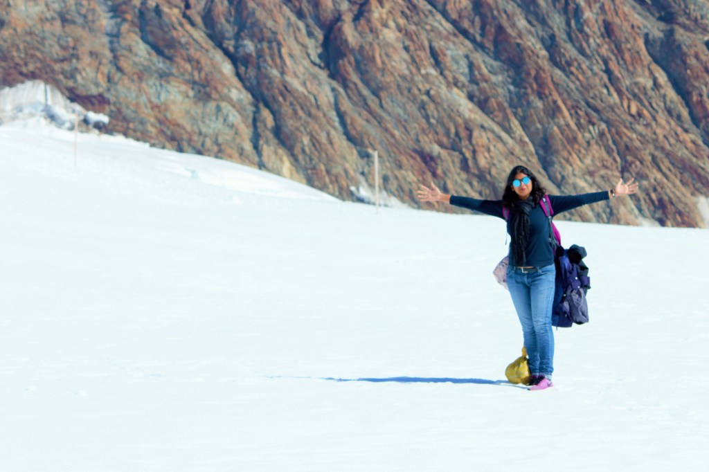 We also visited the Mönchsjoch Hut, a mountain hut located in one extreme here and took us almost 2.5 hours with Smaira to walk up to this place!!! At an altitude of 3,658 metres, this hut is one of the highest huts owned by the Swiss Alpine Club. It was a long trek along the glacier and in fact Smaira was the youngest (4 year old) who walked to this hut (one would not see many tourists coming here)