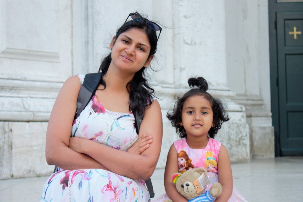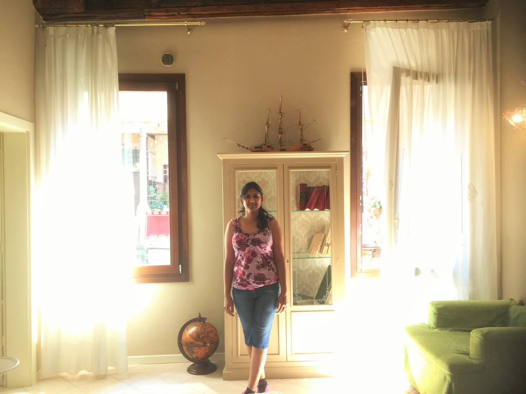 We boarded a shared Vaporetto (water taxi) to the Rialto Bridge. It was a fun ride with our 2.5 year old daughter, Smaira, who was sleeping for most of the time in the taxi. We got down at Rialto Bridge and coordinated with our Airbnb host to reach the apartment. And believe it or not, we felt at home as soon as entered.
