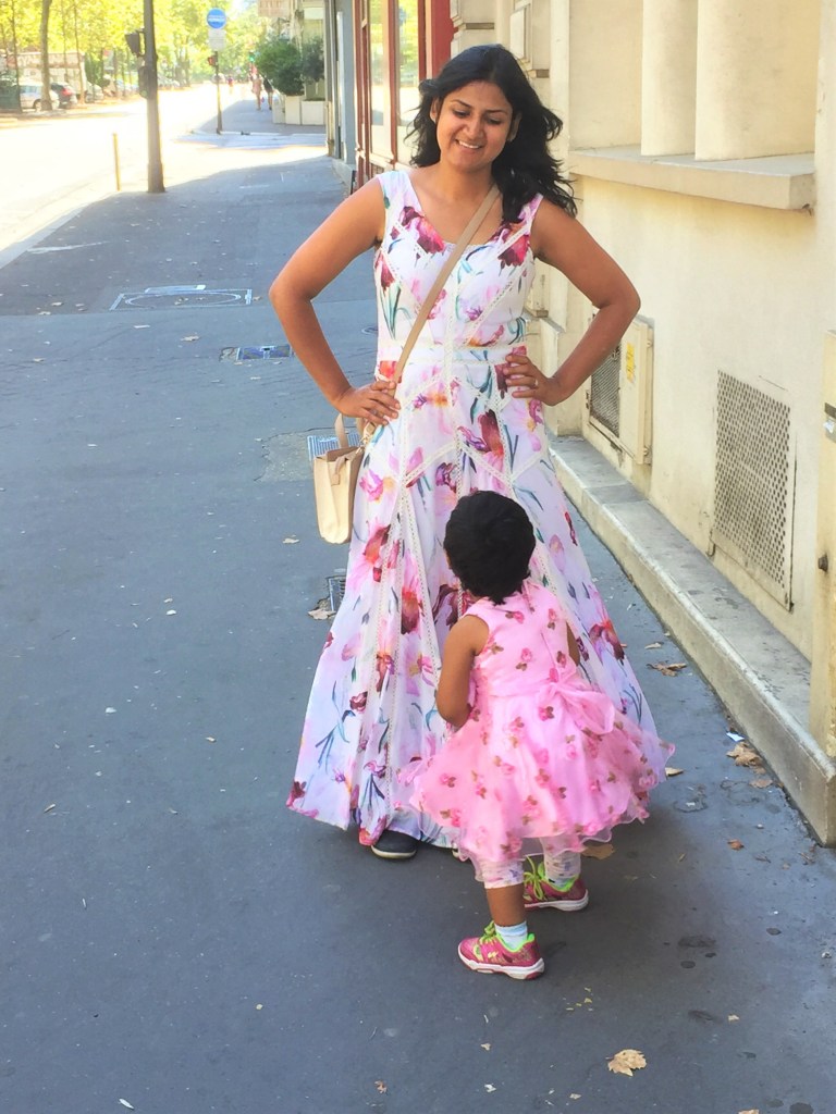 Having spent the most beautiful day yesterday, we lazily spent the time today and Minal dressed up in her best outfit and we took to the French streets for few poses with Smaira, our daughter.