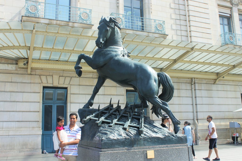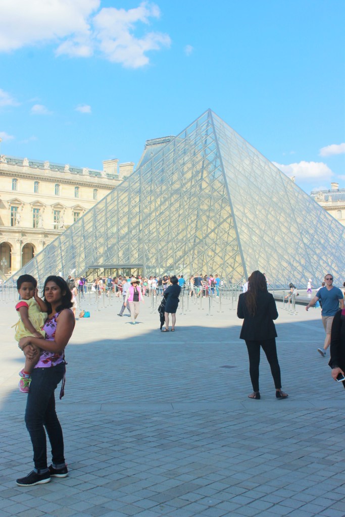 From station, we went directly to the museum Musee Du Louvre. We paid a little extra to keep our luggage while we visited the museum. We bought the tickets on the counter. The museum is huge, and one can spend whole day (it is a treat for history buffs) here. We could check-out only one-fourth before our daughter got exhausted. Gladly, we did make it a point to visit the most famous painting of Mona Lisa!!! In fact, the moment we reached in the hall where the painting was clamped, more than the painting, we were astonished to see the swarm of bees, oops, I mean the plethora of people viewing the same in awe!!! We, as a family, watched the mesmerized audience while the mesmerized audience looked at the Painting!!! I was rather more interested to get closer and see if Mona Lisa’s eyes followed me when I move left & right. Sadly, crowd did not let us come any closer, gladly, we did not let Mona Lisa see us either!!! 😊