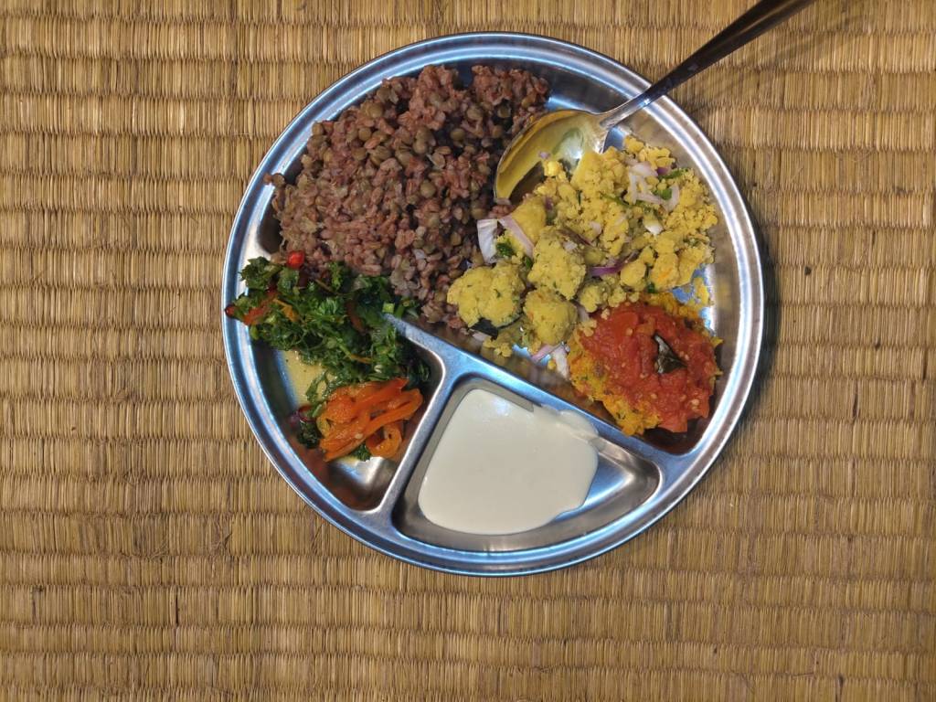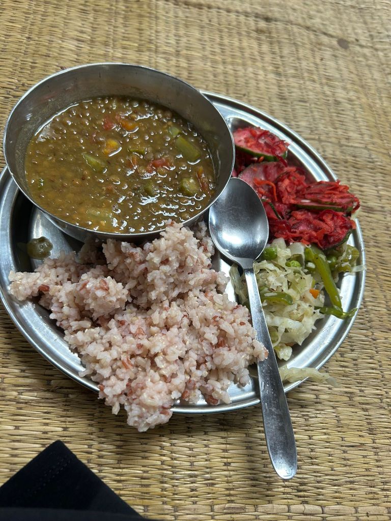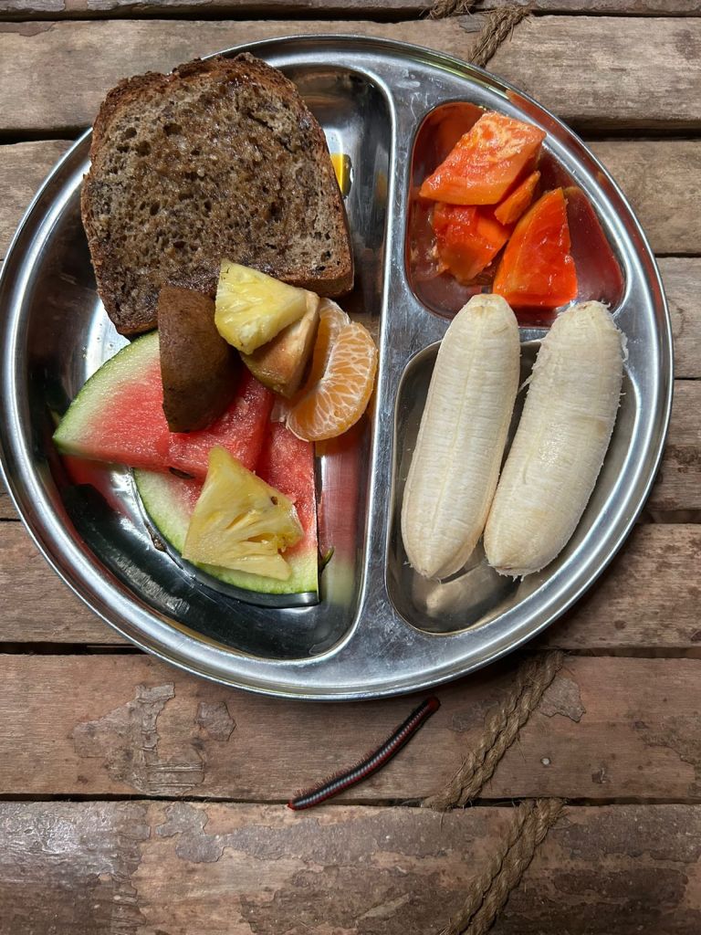 They supplied us with two mattresses, two pillows, two pillowcases, and four bed sheets (two to take on the top); the bed sheets and pillowcases had to be washed by me on the last day of our stay, it was a rule! The place is totally off grid (not connected to electricity or water supply), the main hut (where everyone gathers for all three meals and kitchen) are the only two places that have electricity – which are powered by solar panels. One is not supposed to use phone or electronic devices in either of these areas. There is a small technology area where electronic devices can be charged from 9 am to 4:30 PM (the only place where devices could be charged). The whole atmosphere and rules are designed in such a way to encourage immense human connection and avoidance of electronic devices. From Monday through Friday, our community schedule was as follows: