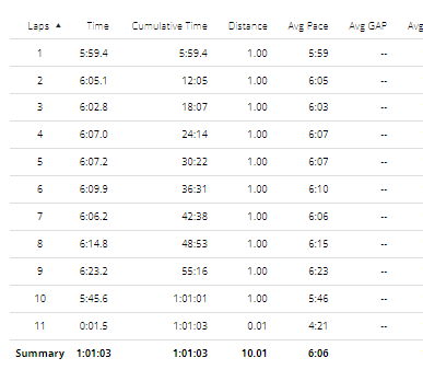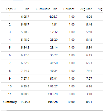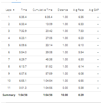 Practice Run – Sept 10th – Did 10 kms under 60 mins.