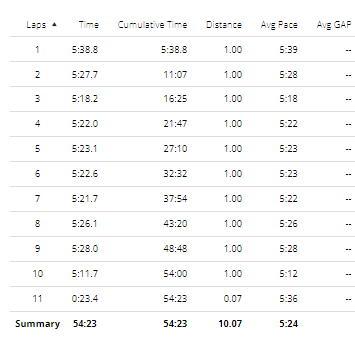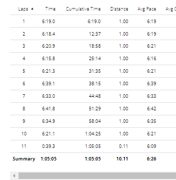 Practice Run – Oct 24th – 65 mins (10 kms).