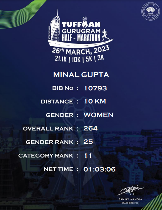 Event run – Tuffman Gurgaon – Mar 26th, 2023 – 63:06 mins (10kms)