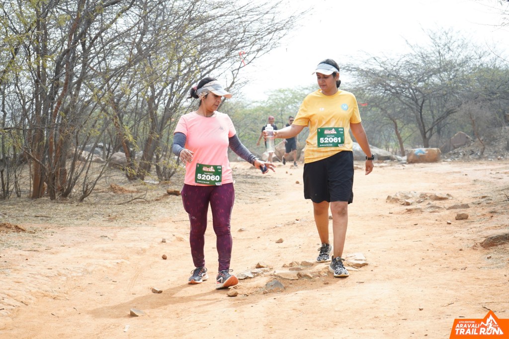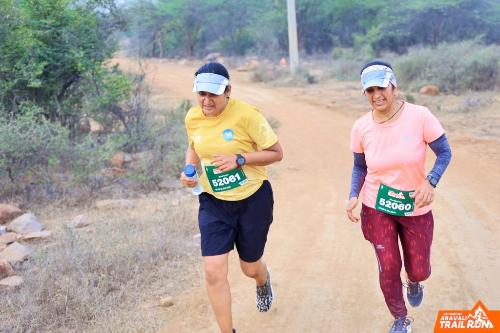 Reaching the 14 km mark, the view of the entire Aravalli range was breathtaking, filling us with joy. Meeting fellow runner Anju Saini we felt happy.